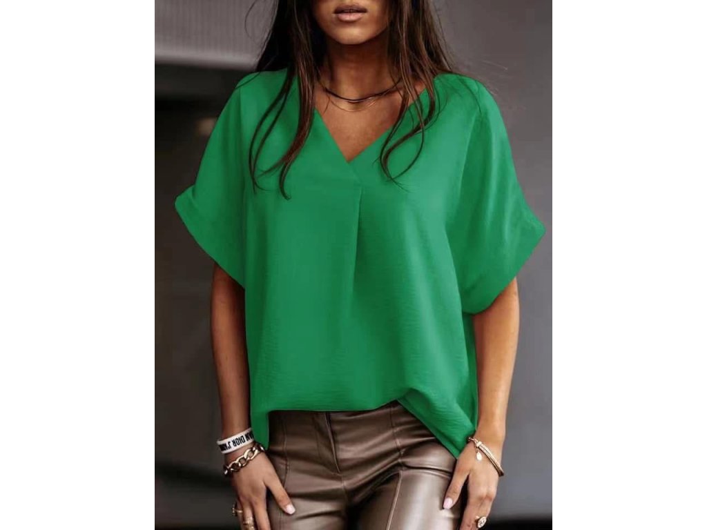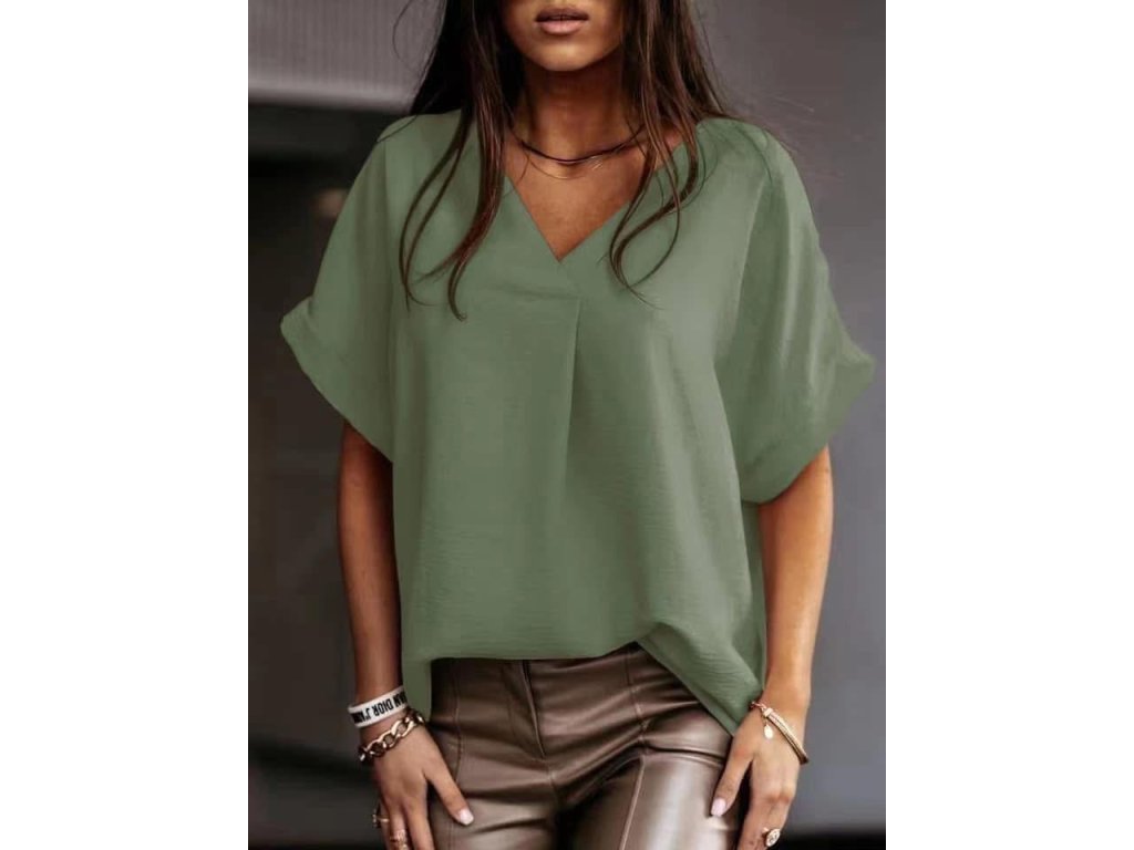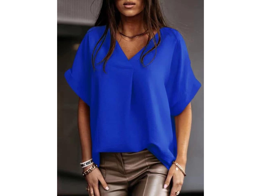 Lehký, vzdušný střih s jemným výstřihem do V, který lichotí postavě a dodává outfitu ženskost. Volnější silueta působí přirozeně elegantně a skvěle se kombinuje s kalhotami i sukní.