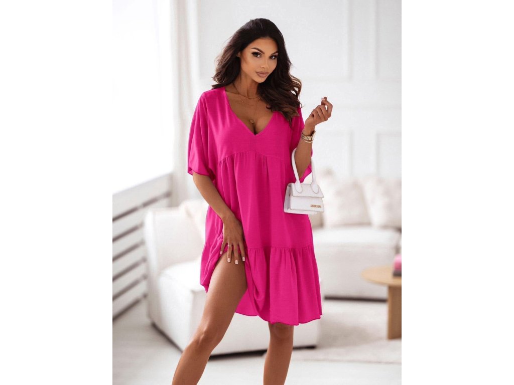 Vzdušné šaty, které působí něžně, ale zároveň sebevědomě. Volnější střih krásně splývá, dodá ti nenucený luxusní vibe. Perfektní na letní dny, dovolenou i stylové městské procházky.